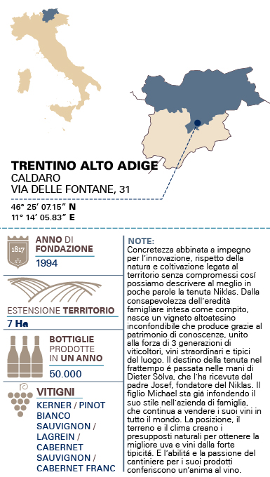TIPOLOGIADOC Lago di Caldaro Classico ZONA PRODUTTIVACaldaro VITIGNO100% Schiava TIPOLOGIA DEL TERRENOSuolo argilloso e ciottoli calcarei. ETÀ DEI VIGNETIDa 30 a 40 anni. VINIFICAZIONEBreve macerazione a freddo a temperatura controllata in serbatoi di acciaio. Fermentazione finale a 18 °C. Fermentazione malolattica svolta in acciaio. SISTEMA DI ALLEVAMENTOSistema a pergola. Viticultura naturale integrata. COLORERosso rubino brillante PROFUMOBouquet intenso e fruttato, sentori di piccoli frutti rossi. ABBINAMENTIIl compagno ideale per ogni occasione. Perfetto con speck, salsicce e formaggi, antipasti saporiti e carni bianche. Delizioso anche accompagnato a piatti di verdure leggere e pesce. SAPOREVino rotondo, dalla beva succosa e con un’elegante struttura del tannino.